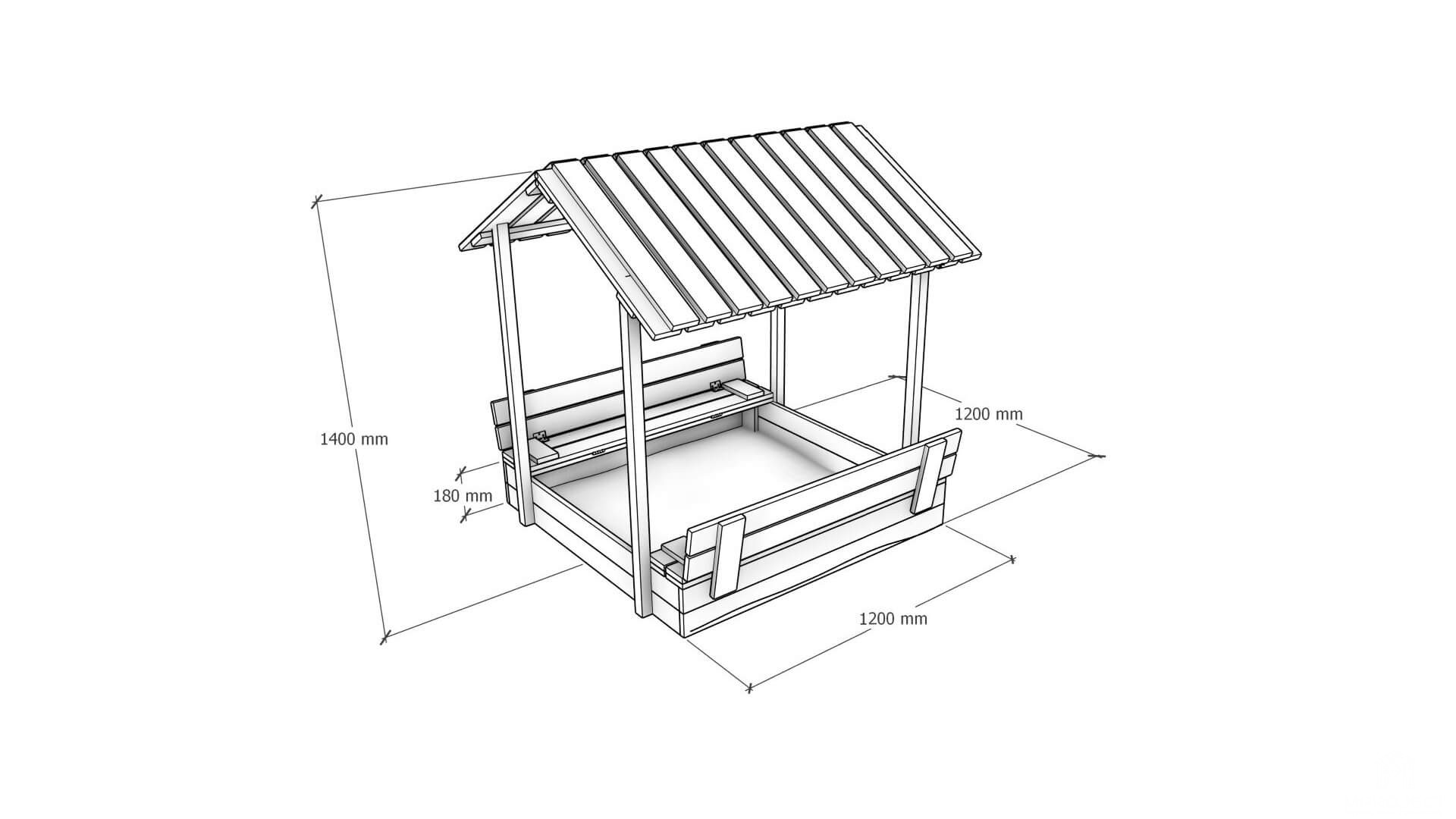 A zárható, tetővel ellátott fa homokozó tökéletes megoldás a kertbe – megvédi a gyerekeket a naptól és az esőtől.