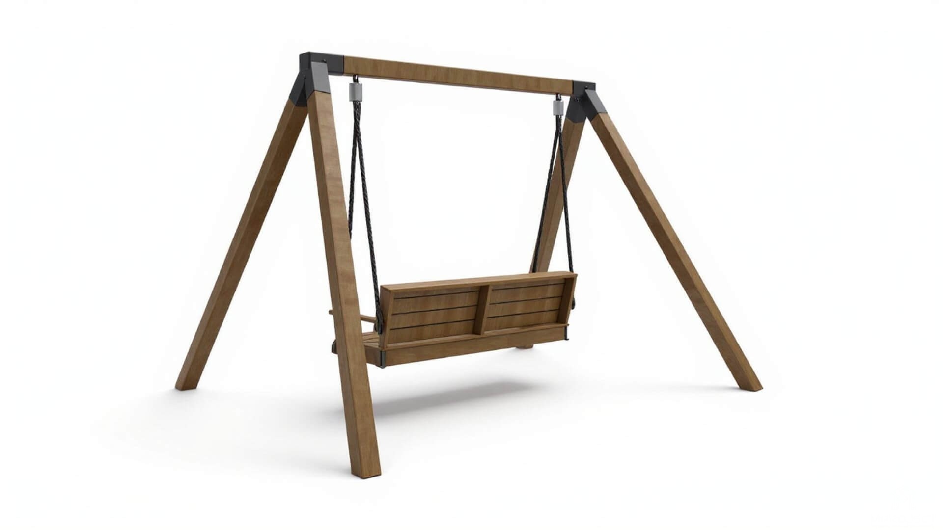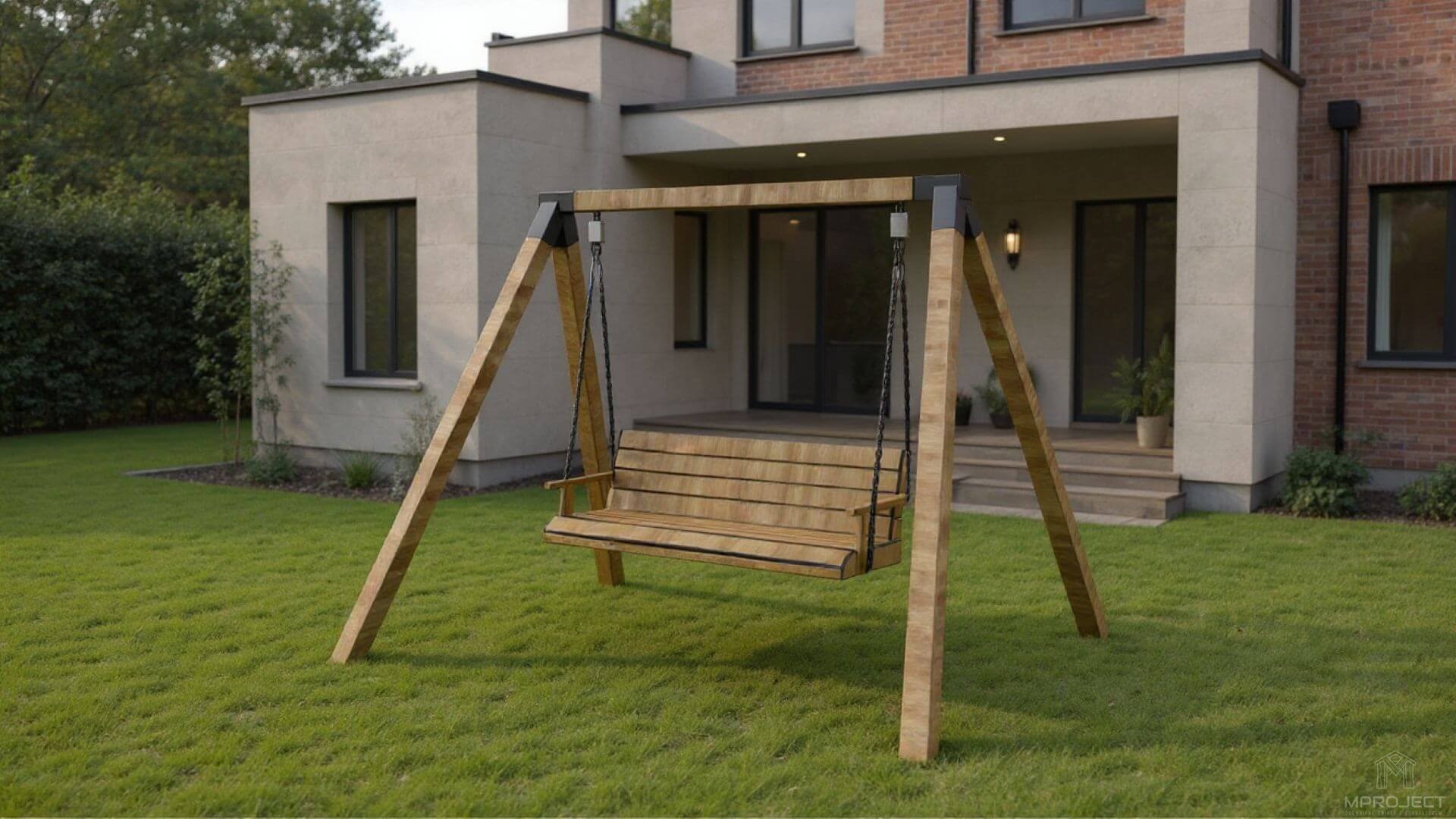 Minimalista kialakítású, hagyományos formájú kerti hinta – ideális teraszra vagy kertbe.
