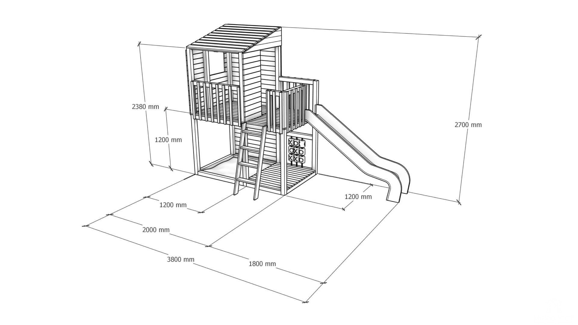 Klasszikus játszótér játszóházzal és csúszdával. Esztétikus, funkcionális és ideális kis kertekbe.